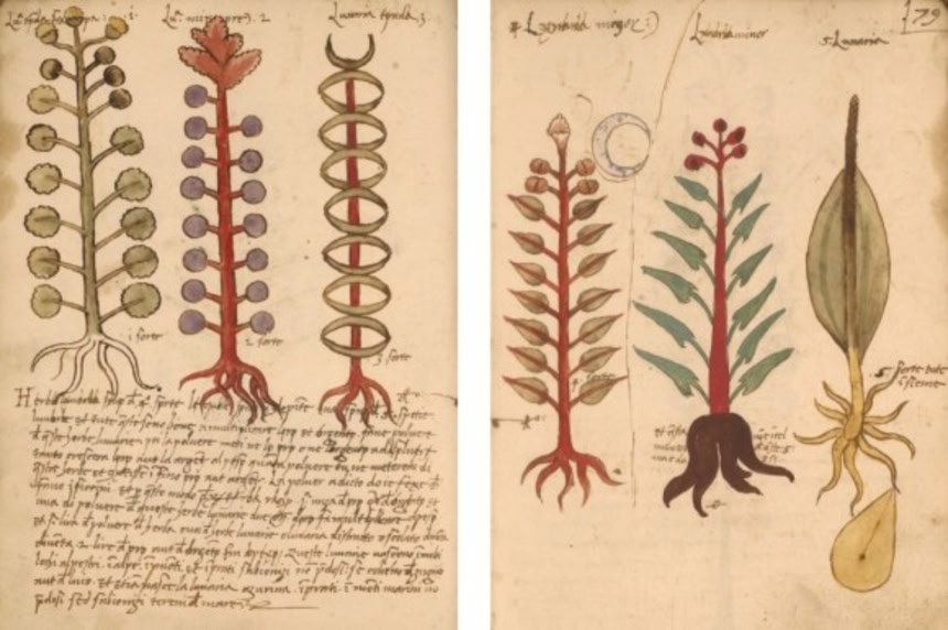 擬人化する手法がこの時代のトレンドの1つで、それに特化し謎ぽっく書いたのがヴォイニッチ手稿、ヴォイニッチ手稿の文字列は同じのが多様されてて言語的に成り立たん