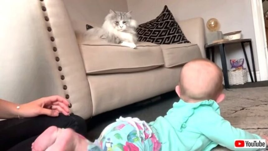 一緒に暮らすペットたちも、ミアちゃんの成長ぶりにはビックリ戸惑っているみたいだ。