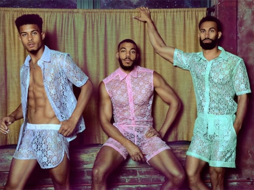 あらやだ不思議!マッスルなメンズたちが身に着けると、レースの隙間から、筋肉をまとったやさしさがこぼれ落ちちゃってる風。