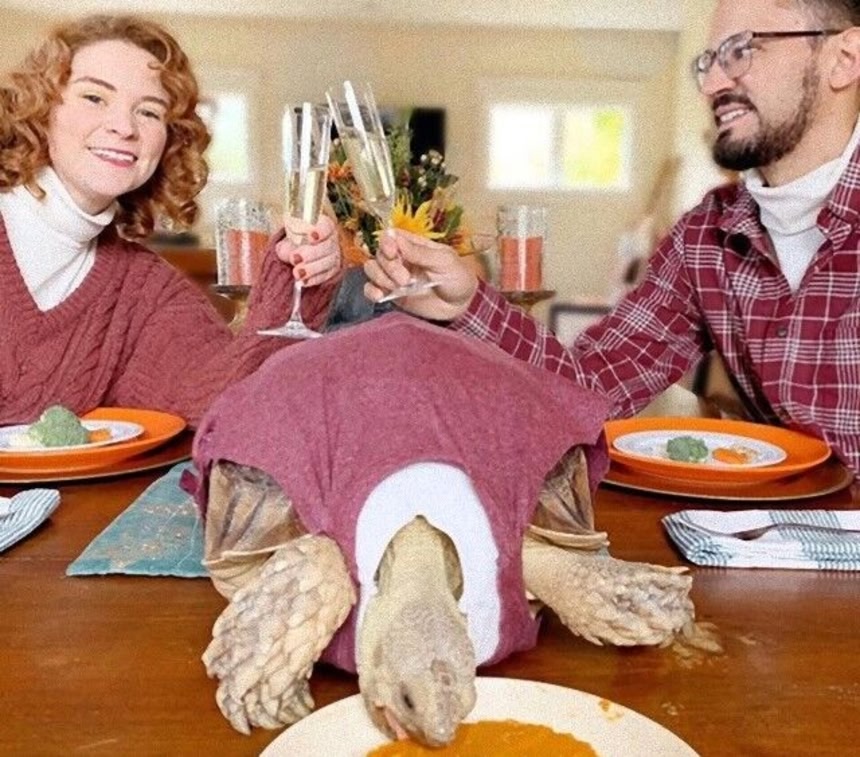 通常、カメは野生ではとても大きくなるが、小さな家の中で飼育されるとあまり成長しないのだそうだ。ミズ・ジェニファーの体重は1.8kgで、大きめのお皿と同じぐらいのサイズだという。