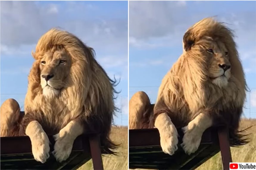動画は男性スタッフがライオンを撫で、ほんわかムードでスタートする。信頼関係がしっかりと構築されているようだ。