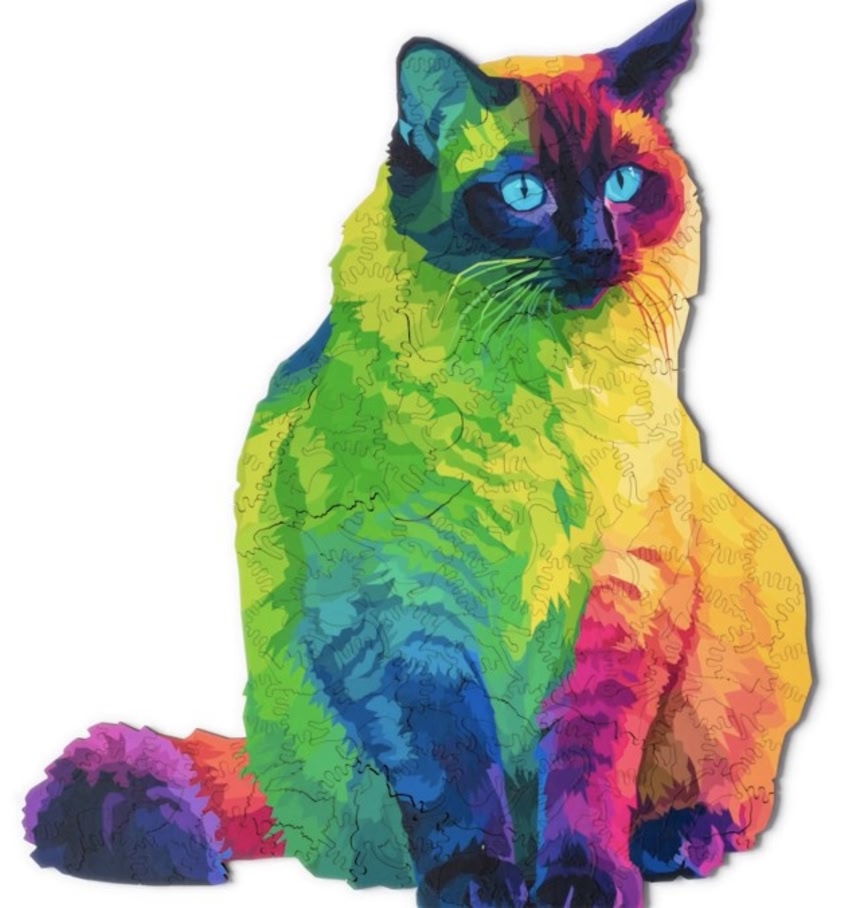 そんな中、満を持して登場したのが、猫好きの人のための猫の群れパズルである。ピースを組み合わせると巨大なレインボーカラーの猫が仕上がるのだが、その中にはいろんな形をした猫型のピースが含まれている。