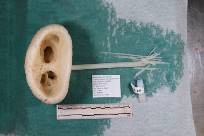 通常、珊瑚のような海綿生物は他の種に生息地を提供し、生物学的ホットスポットを育てる場所を作る。ほとんどの海綿は水深450~900メートルの深さに生息しているが、このE.T.スポンジはまさに未知の海底にひっそりと生息していたようだ。