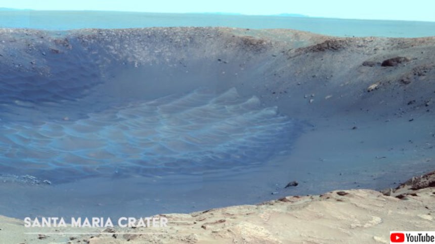 キュリオシティが撮影したクレーター。この窪みはなんと直径154kmもあり、内部には砂漠のような場所がある。