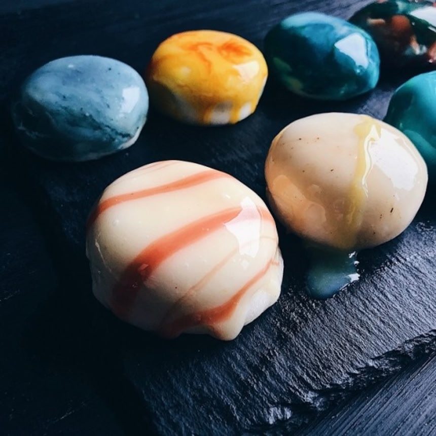 今回は、白さまぶしいまんまる雪見だいふくをつやつやなカラフル惑星にチョココーティング。いまだかつてなかったかもしれぬ天体系に変貌させてみた。