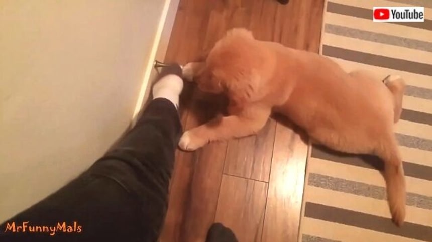 この「びよ~ん」が面白くて、つい遊んでしまうわんこたちの様子を集めた動画を見つけたので、楽しんでもらえたら嬉しいよ。