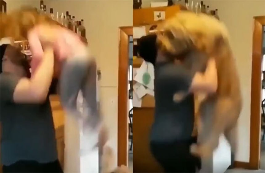 娘を天高く持ち上げ、更に大型犬を持ち上げた後も矢のような催促コール。