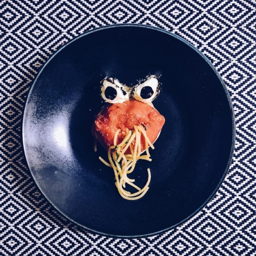 今回は主役のたらこでできてる謎クリーチャーを召喚。たらこスパが主食のモンスターだ。