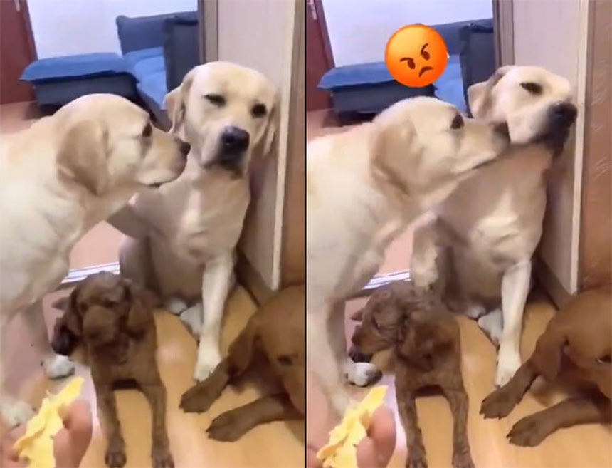 Labrador Gets Headbutted By Guilty Pal For Snitching To Owner About Messy Floor