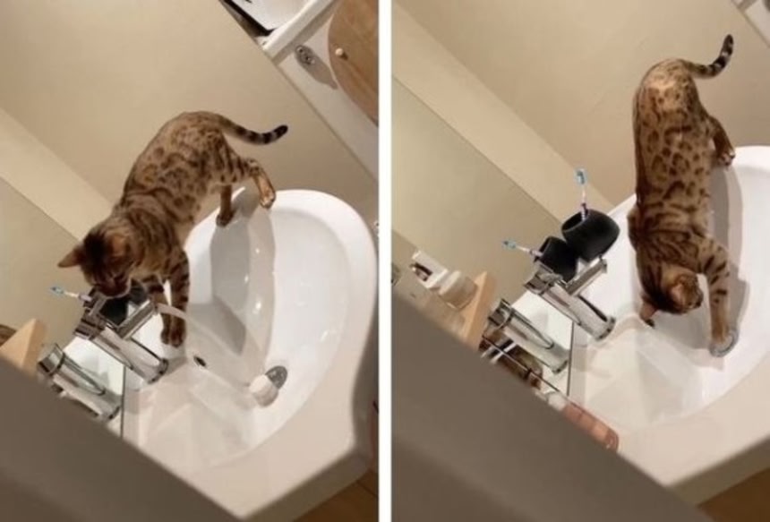 ジャスミンさんがバスルームにいた時、アンバーが入って来て洗面所に飛び乗り、蛇口を口で器用にひねったのだ。