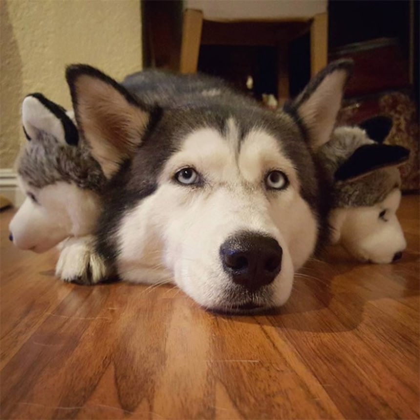 この画像を大きなサイズで見る14. グデっとハスキー、ウイズぬいぐるみ首