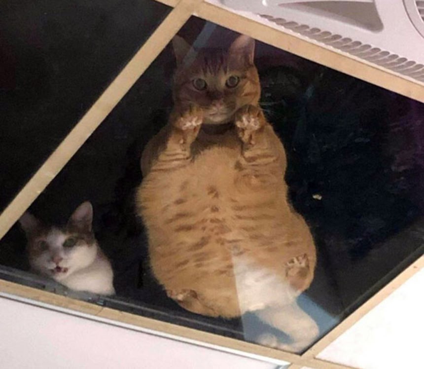 ・猫、太そうだけど、ガラス割れて落ちてきたりしないかな。