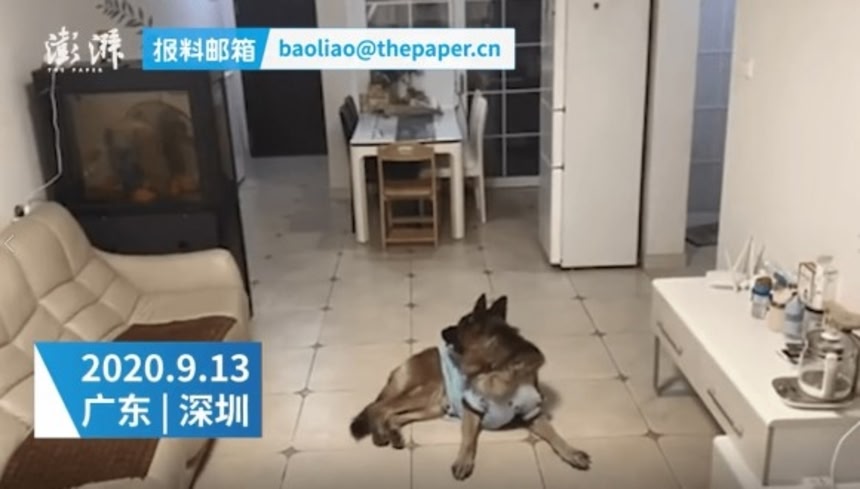 中国広東省深圳市に住む一家に飼われているジャーマン・シェパードのヌオミは、4年前にこの家族に引き取られた。