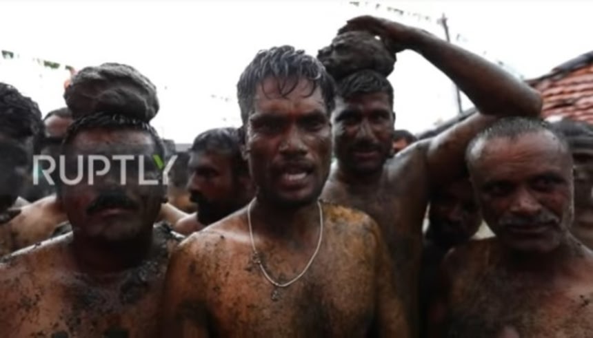 Dung flung as Indian village celebrates end of Diwali with unique ceremony
