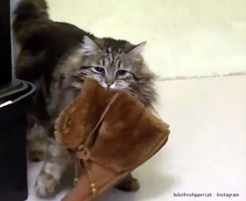 夜行性の猫にとって夜は活動タイムだ。猫のジョイは飼い主に自分のおもちゃを口にくわえて、2階の寝室へと運び込んだ。