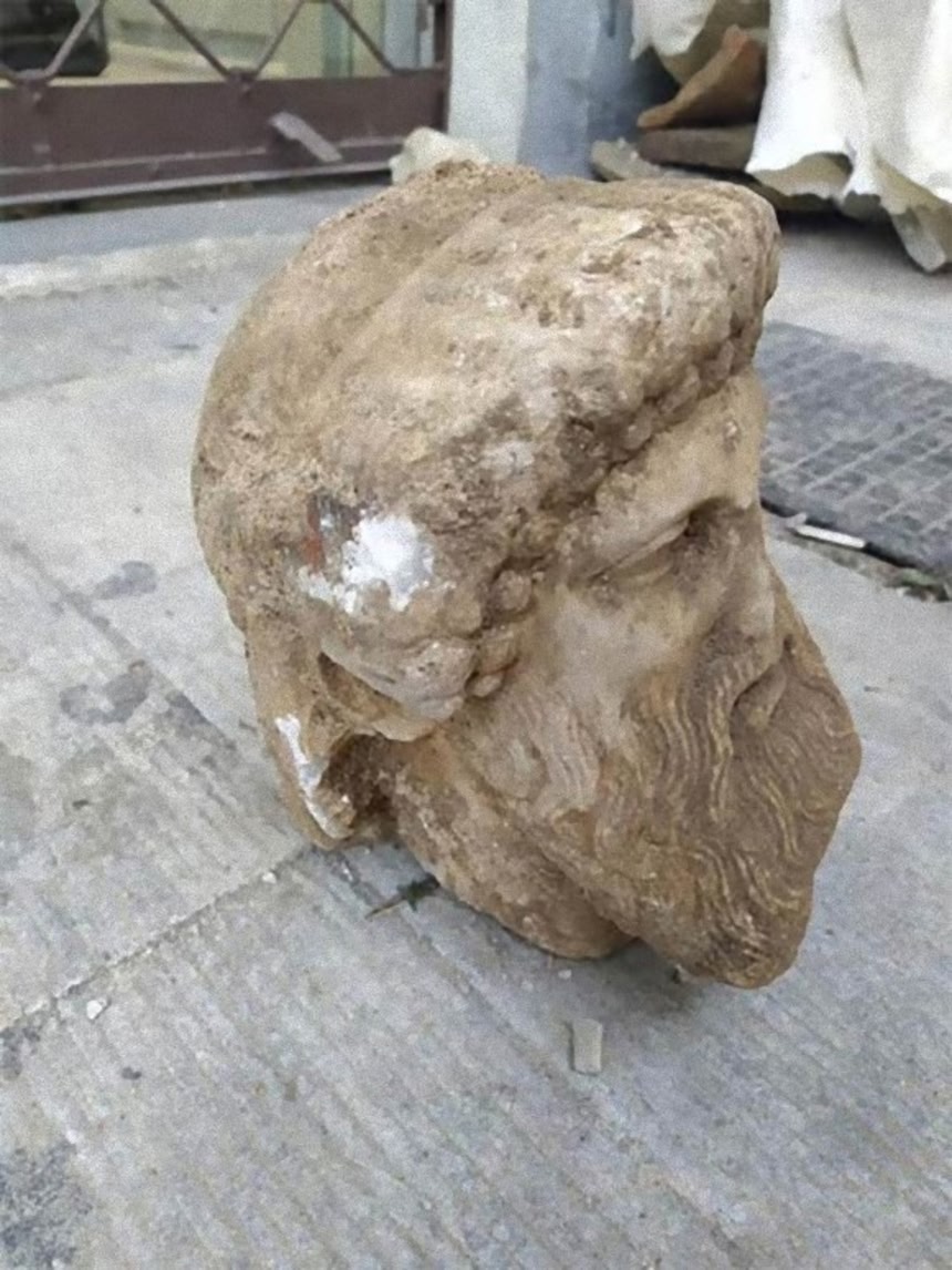 最初は、ゼウスの頭部かと思われたが、よくよく調べてみると、ヘルメス神を表わした大理石の像の一部であるいうことがわかった。