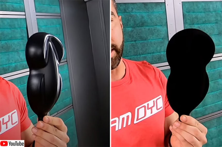 このチャレンジに挑んだのは、アメリカのカーペイント系チャンネル「DipYourCar」だ。超黒塗料「黒色無双」を塗ると、99.4%という圧倒的光吸収率で、その立体感がほとんどわからなくなってしまう。比較したものを見れば一目瞭然。