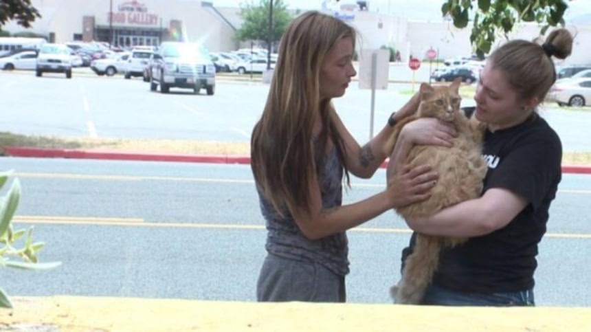 不安でたまらない日々を過ごしていたライアナさんとカイリーさんは、立てかけられたフェンスの外からその様子を見守っていたが、スパイクの姿を見て大きく安堵し、4日ぶりの愛猫との再会にポロポロと涙を流した。