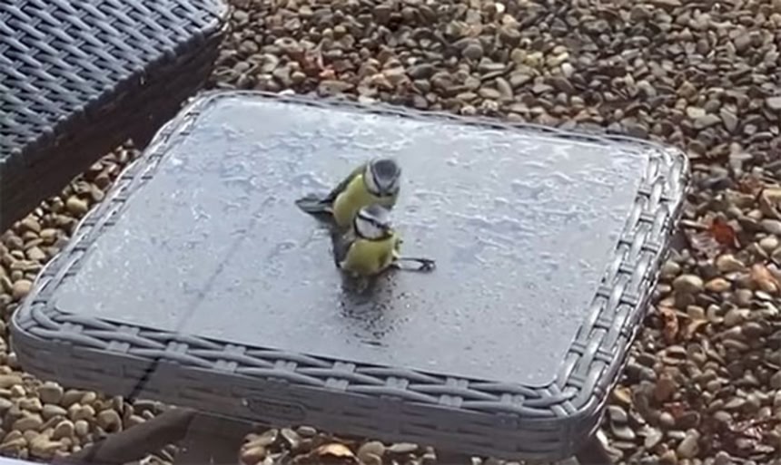 この画像を大きなサイズで見るアイルランド、リムリックに住むイボンヌ・クリフォードさんの家の窓ガラスにアオガラという小鳥が衝突し、庭のテーブルに仰向けに倒れたまま動かなくなった。