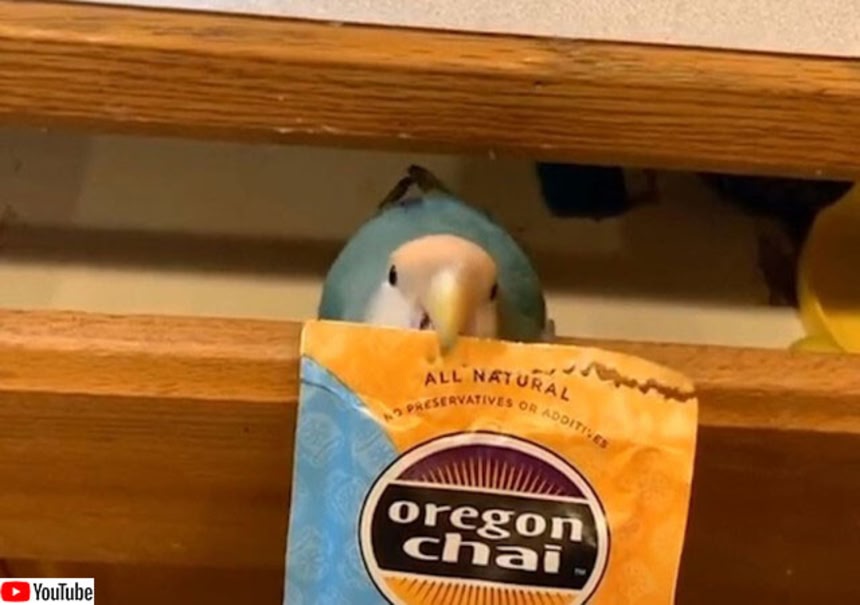 アメリカ、アイダホ州に住むケリー・コスマさんが飼っているインコのマウイは開封の達人、おっと達鳥だ。