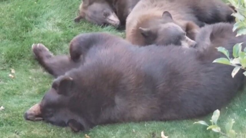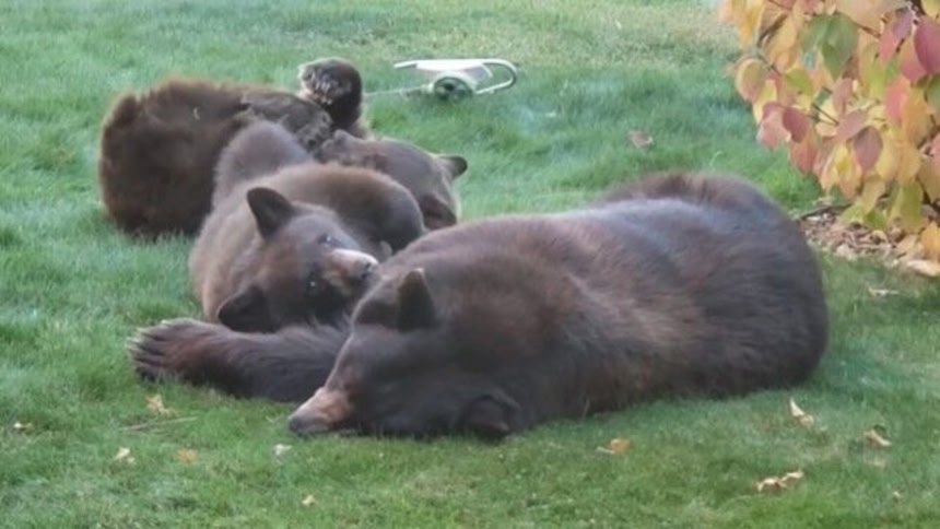 今回も、アメリカ合衆国カリフォルニア州サウスレイクタホのあたりで、子グマ二匹を伴っていた母グマが日向ぼっこをしながらお昼寝する姿が撮影されていたよ。