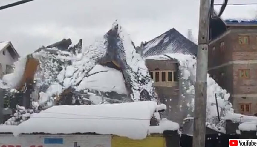 この画像を大きなサイズで見るインド北部カシミール地方にあるシュリーナガルでの出来事だ。寒波の影響で大雪が降った後、3階建ての住宅の屋根が雪の重さに耐えられず、崩壊するというアクシデントが発生した。