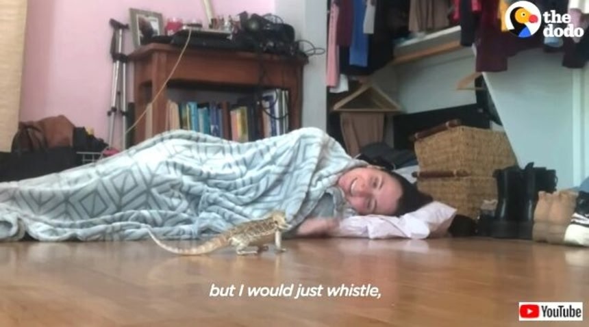 フトアゴヒゲトカゲの「モチ」くんは、飼い主のミナさんが名前を呼ぶと遠くからでも全力でパタパタ走ってくる。
