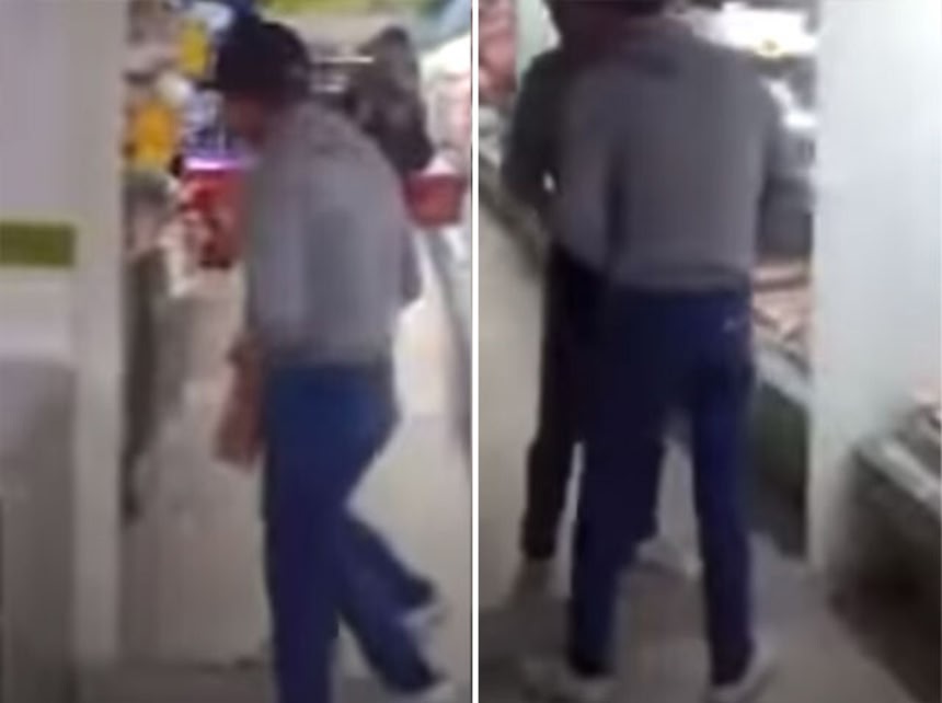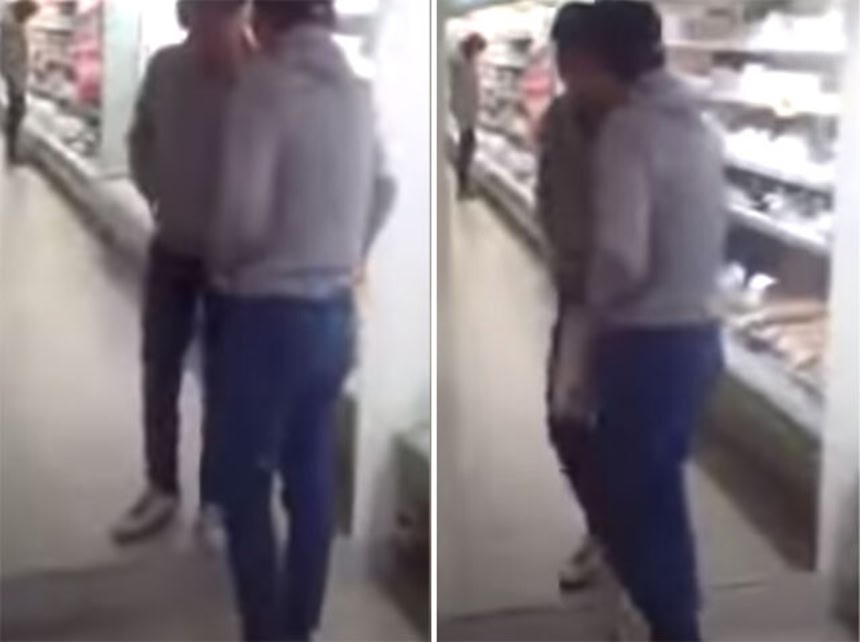 それはウクライナ北西部、ルーツクのコンビニでそれは起きた。かなり泥酔した男性は鏡の中に映った自分を他人と思い込んでしまったようだ。
