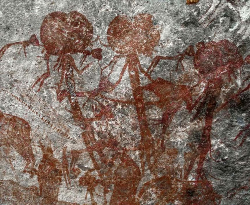 ポーランド、クラクフにあるヤギェウォ大学の研究者たちによると、描かれているものの多くは、動物たちのほかに、エイリアンのようなまるで未知の生き物で、現代のサンダウェ族につながりそうな絵とはまるで違うという。