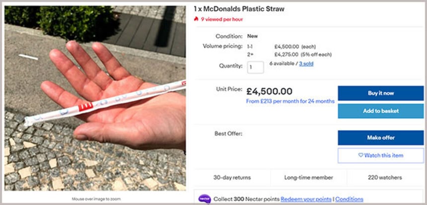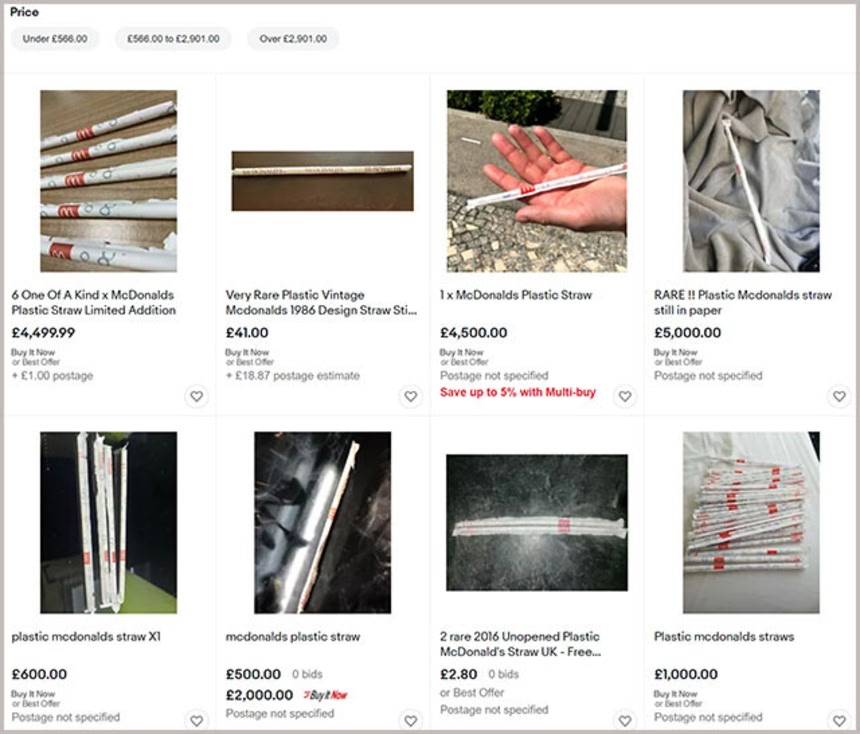 大手オークションサイト「eBay」では、かつてマクドナルドで使用されていたプラスチック製ストローが多数販売されている。