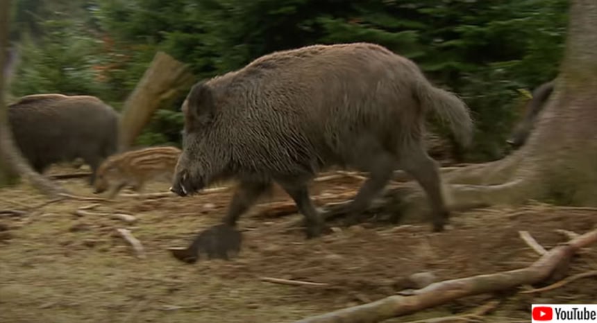この画像を大きなサイズで見る子供をつれたイノシシの集団