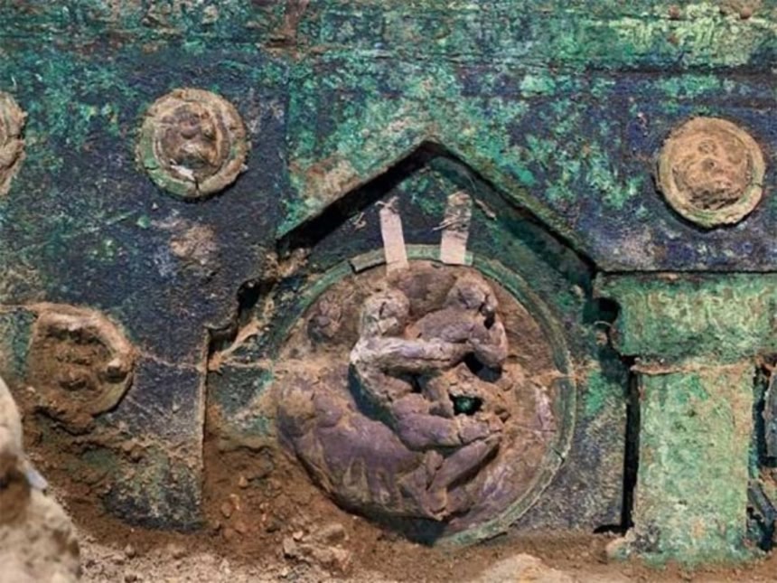 馬車は青銅で惜しげもなく飾り立てられているため、重要な儀式で使われていたことがうかがえる。