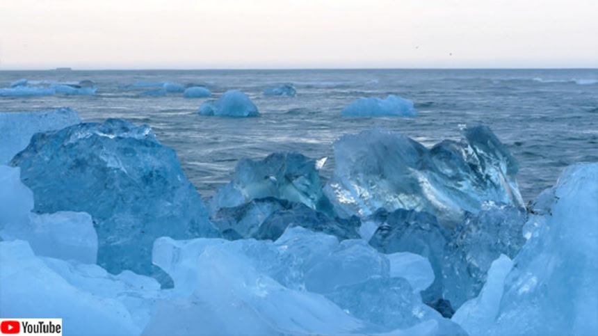 黒い砂浜に良く映える美しい氷をとらえた写真家の動画とともに、その見事な景色を堪能しよう。