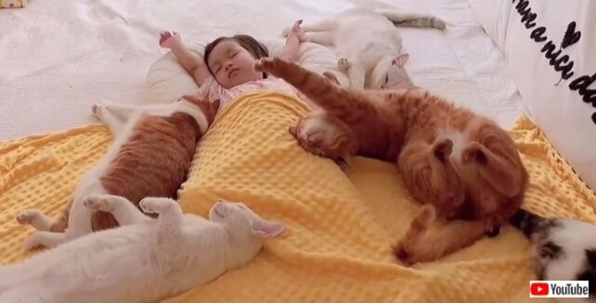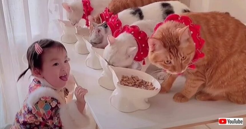 というわけで、今日は小さな女の子と5匹の猫たちが過ごす、優しい時間をシェアしよう。
