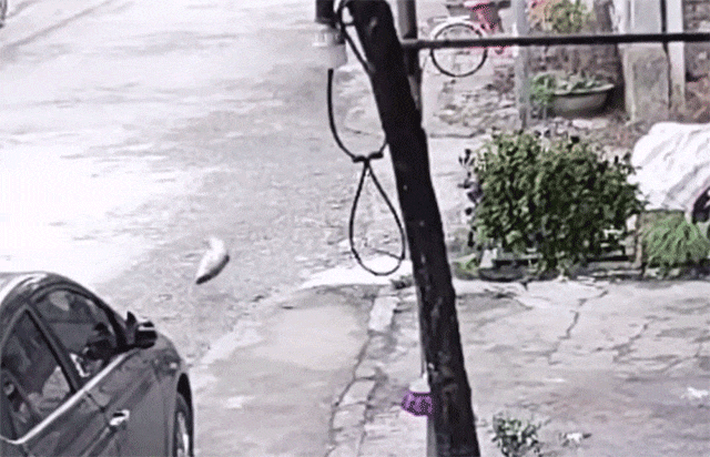 この画像を大きなサイズで見る地面に落下した魚だが、そのままでは終わらなかった。体をくねらせどんどんと移動、道路にまで躍り出た。