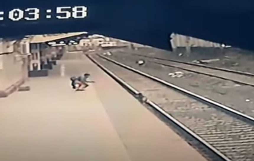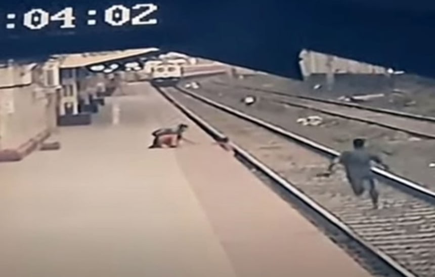 4月16日、インド、ムンバイのバンガニの駅に設置されていた監視カメラが衝撃の瞬間をとらえていた。