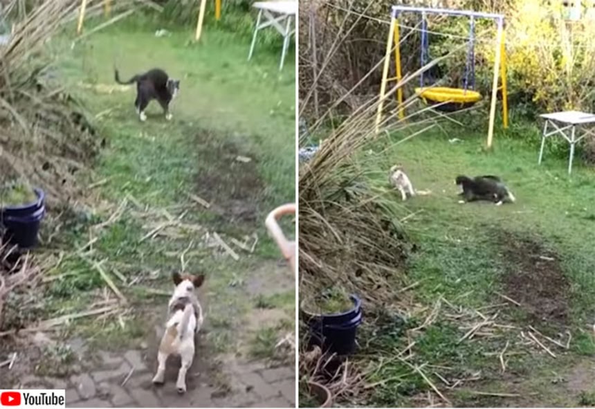 これ追いかけっこを誘ってるけど猫に相手にされてないように見える