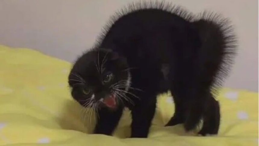 今回海外掲示板Redditでキシャー!な状態になった猫の様子があまりに刺激的だと話題を呼んでいた。
