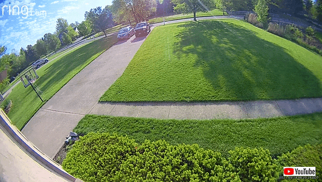 この動画は、アメリカのオハイオ州ニューアルバニ―で撮影されたものだそう。最初、カメラの映像には、何の変哲もない前庭が映っていたのだが……。