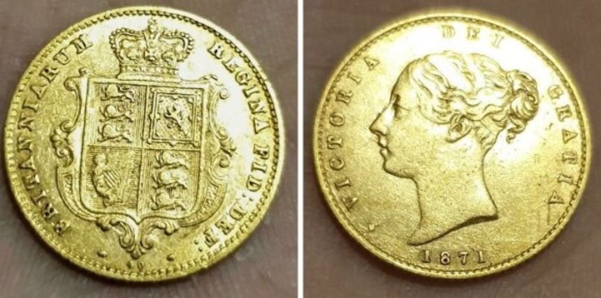 自慢の1品はこれ!スーパーの裏で見つけた1871年のイギリス金貨。その時はほんとにびっくりして気絶するかと思った。そのあと家でお手柄の金属探知機を念入りに掃除しちゃった。