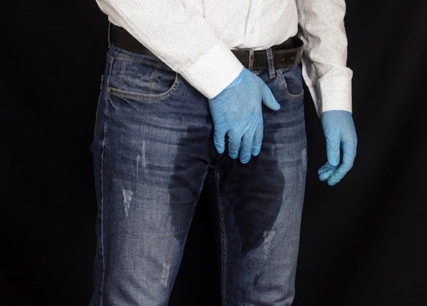 この画像を大きなサイズで見る図らずも失禁をしてしまった経験のある人ならこの状態を良く知っているだろう。だがこれは実際に漏らしてしまったわけではない。最初から股間の部分が濡れているように染められているのだ。