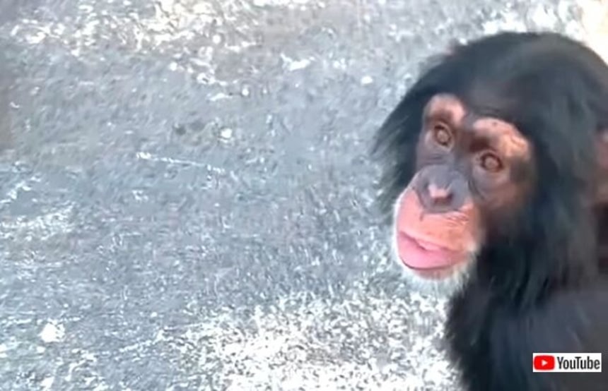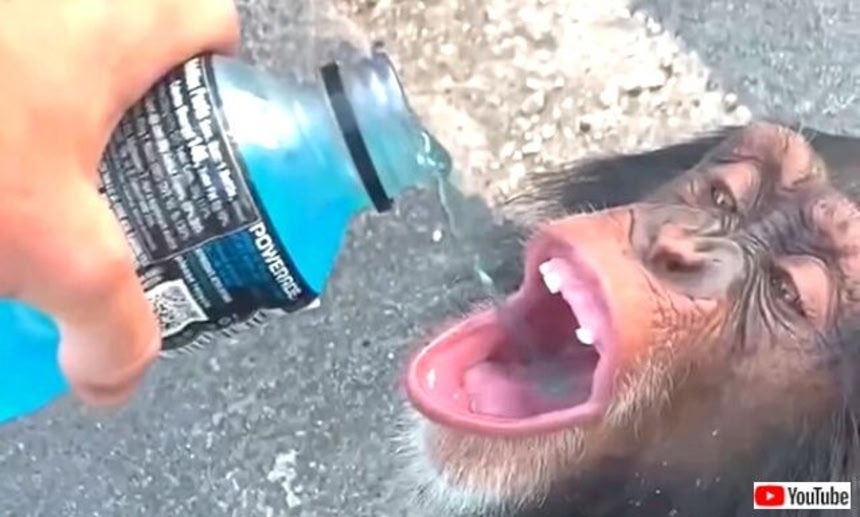 とある日、アメリカの某所ではかなりの暑さに見舞われたらしい。のどがカラカラになったチンパンジーが、撮影者さんの手にあるモノに熱い視線を送っているよ。