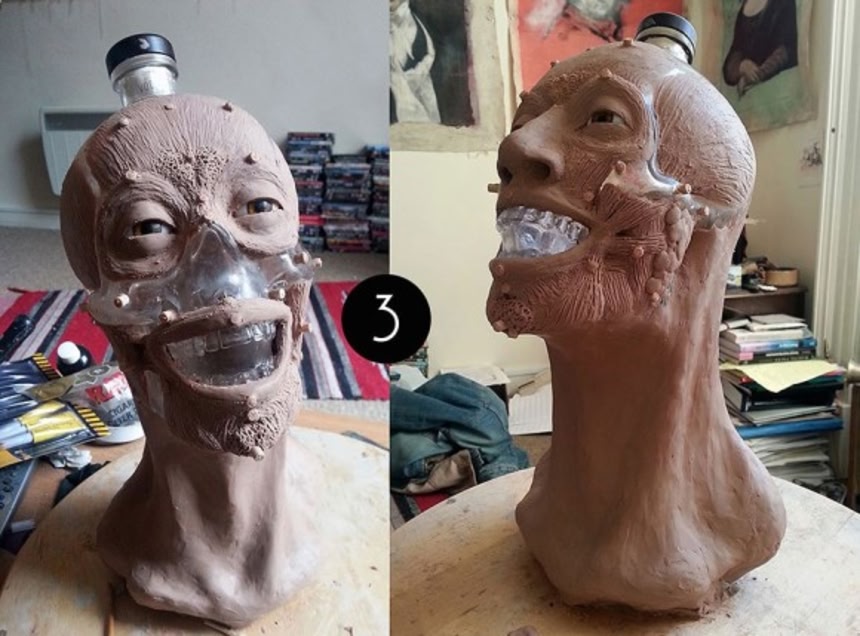 さて通常ならばベースになるのは実在していた人間の頭蓋骨。しかし市販のボトルの骸骨からはどんな顔が浮かび上がるのか?