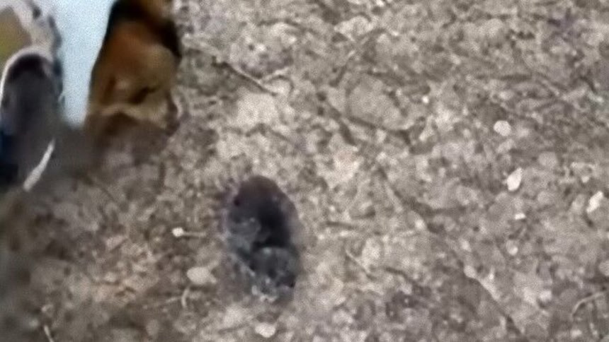 茂みの中から見つけちゃったのかと思ったらこんな道の真ん中に。這い出してきちゃったのか、発育不良か何かで置いて行かれて必死に這い出してきたのか…。親が迎えに来るにしろ、保護されるにしろ、ワンコが見つけた縁で無事育つといいな。