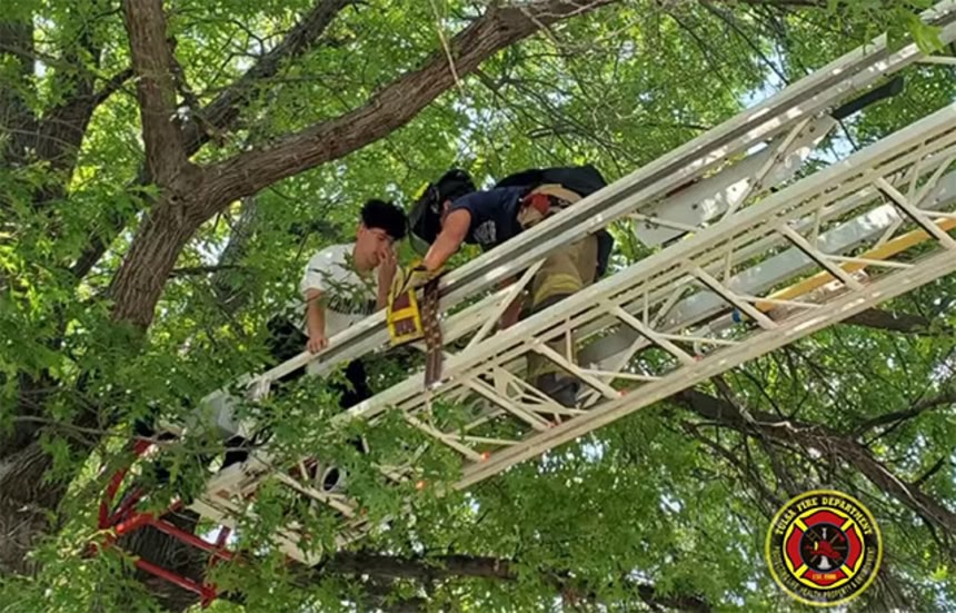 そこで消防署に通報。通報したのが飼い主なのか、目撃者なのかはわからないが、タルサ署の消防隊が駆けつけた。