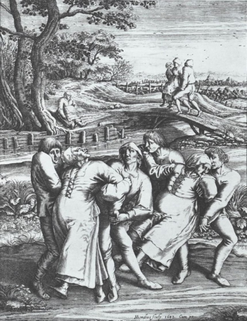 「踊りのペスト」にかかった者は、いきなり手足をくねらせながら踊り始め、疲れ切って倒れるまで踊るのをやめず、しまいには、心臓発作や脳卒中で死んでしまう者も続出したという。