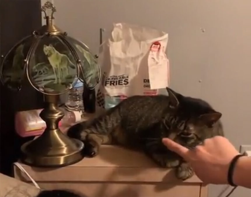 Owner Switches Lamp On By Stroking Cat