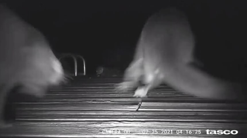映像はノースカロライナ州のロアノーク島にあるノースカロライナ水族館が公開したもの。誰もいない桟橋にはアオサギの姿も映っていたが、深夜には盗んだカニをつまみに盛り上がるカワウソたちが映り込んでいたのだ。