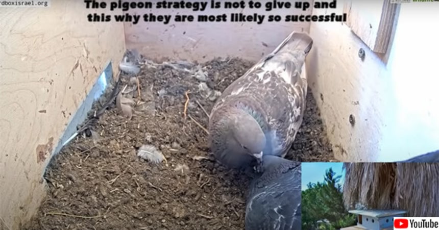 この画像を大きなサイズで見るイスラエルでメンフクロウの親子が住んでいる観察用の巣箱に鳩が侵入する記録動画が話題を呼んでいる。