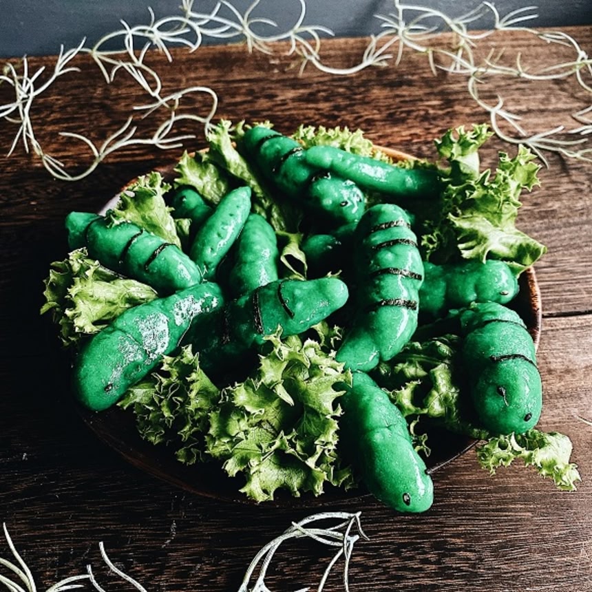 今回はツェペリナイのレシピを応用してツルツルもちもちなイモムシを作ってみた。パッと見枝豆ちっくなイモムシなのでかわいいよ。